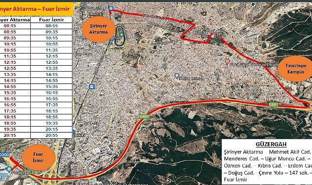 Ek seferlerin yanı sıra fuar boyunca Bornova Metro ve Buca Şirinyer aktarma merkezlerinden geçici servisler hizmet verecek. Ulaşımda aksama yaşanmaması amacıyla fuar çevresindeki önemli noktalarda motorize ekipler görev yapacak; yolcu yoğunluğu olan hatlar ilave seferlerle beslenecek. Tüm hatlarda sefer saat bilgileri, eshot.gov.tr adresinden görülebilir.