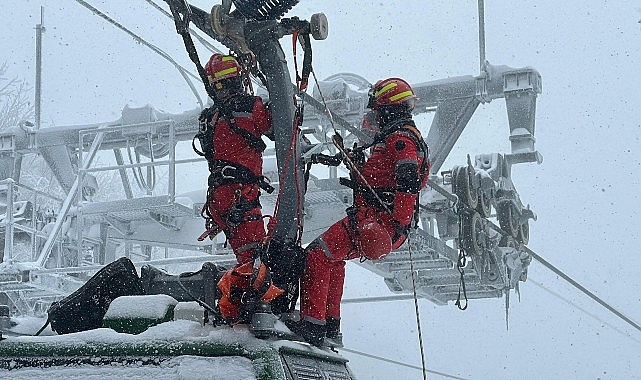 Yoğun kar yağışı altında gerçekleştirilen eğitimde itfaiye personelleri, iki direk arasında kalan kabin içerisindeki insanları kurtarmak için kabinleri taşıyan tellerden kabine ulaşım sağladı. Gerekli önlemleri alan itfaiye ekipleri, kabin içerisinde kalan vatandaşları başarılı bir şekilde tahliye etti.