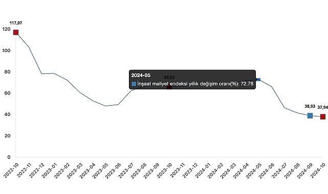 Bina inşaatı maliyet endeksi yıllık %39,06 arttı, aylık %1,33 arttı