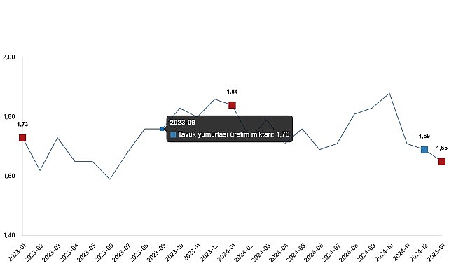 Kümes hayvancılığı üretim miktarı, Ocak 2025