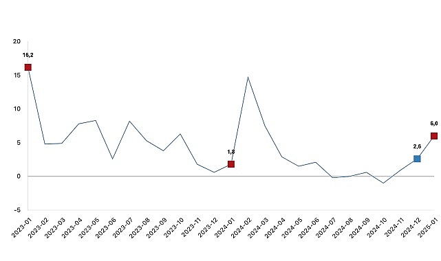 Hizmet üretim endeksi (2021=100) 2025 yılı Ocak ayında bir önceki yılın aynı ayına göre %6,0…