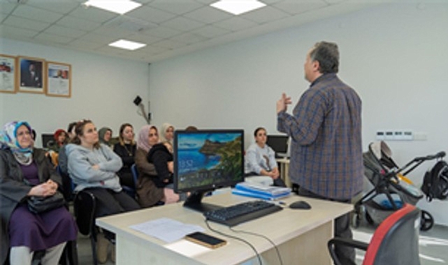 Bayraklı Gümüşpala Kurs Merkezi’nde dikiş kursuna giden kadınlar da ağız ve diş sağlığı eğitimi aldı. Özellikle çocukları için diş hekimi Koray Engin’den bilgi alan kadınlara, isteğe göre ön bakı hizmeti de sağlandı. Eğitimlere 3,5 yaşındaki Zehra Karaderi ile katılan anne Zerrin Karaderi, “Eğitimler çok güzeldi. Ben kızım için katıldım. Dişine çözüm bulmak istedim, sağ olsun hocamız yönlendirecek. Kızımın dişlerinin çoğu çürük” dedi. Neriman Ökten ise “Eğitimi çok beğendim. Doktor bey, çok güzel ve detaylı bir şekilde anlattı. Alanında uzman olduğu belli ve doğru noktalara dokundu. Burada olduğum için mutlu oldum. Kendimize nasıl bakacağımız konusunda yönlendirdi. Diş sağlığı hizmetine ulaşmak çok zor ve bu hizmeti burada almak cevher gibi oldu” diye konuştu.