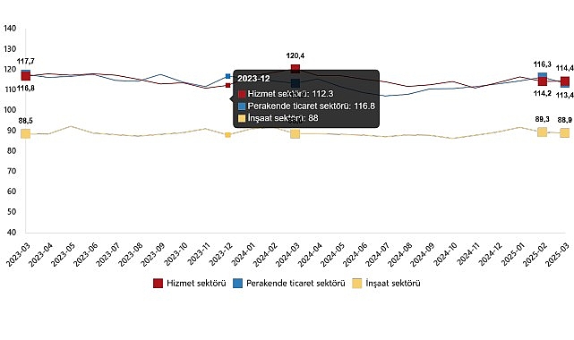Hizmet, Perakende Ticaret ve İnşaat Güven Endeksleri, Mart 2025