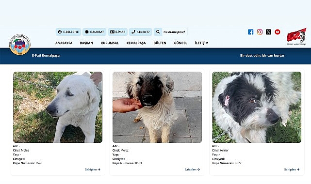 Kemalpaşa Belediyesi’nin resmi internet sitesi üzerinden erişilebilen bu sistem sayesinde, sahiplendirmeye uygun köpeklerin fotoğraflarıyla birlikte cinsi, yaşı ve küpe numaraları gibi detaylı bilgilere ulaşmak mümkün hale gelirken; sahiplenme talebinde bulunmak isteyen yurttaşlar, platform üzerinden form doldurarak işlemlerini hızlı ve kolay bir şekilde tamamlayabiliyor.