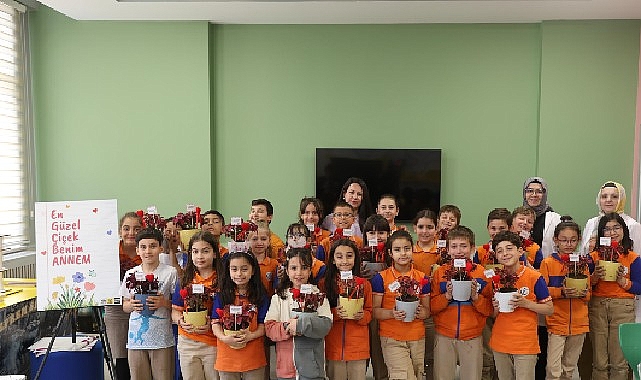 Saksılarını özenle süsleyen öğrenciler, hazırladıkları çiçekleri annelerine hediye ederek, Anneler Günü’nü kutladı.